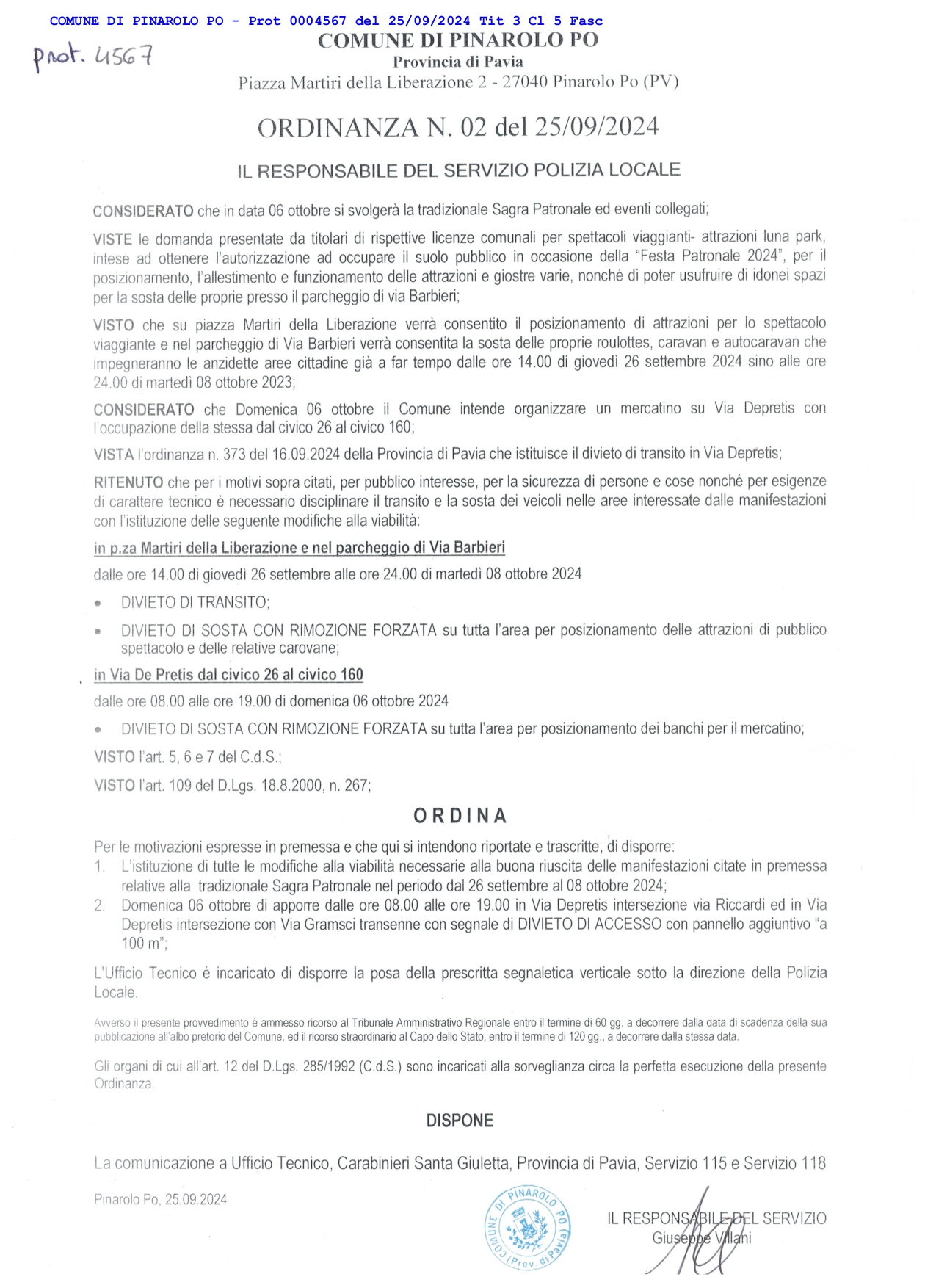 Ordinanza Festa Patronale