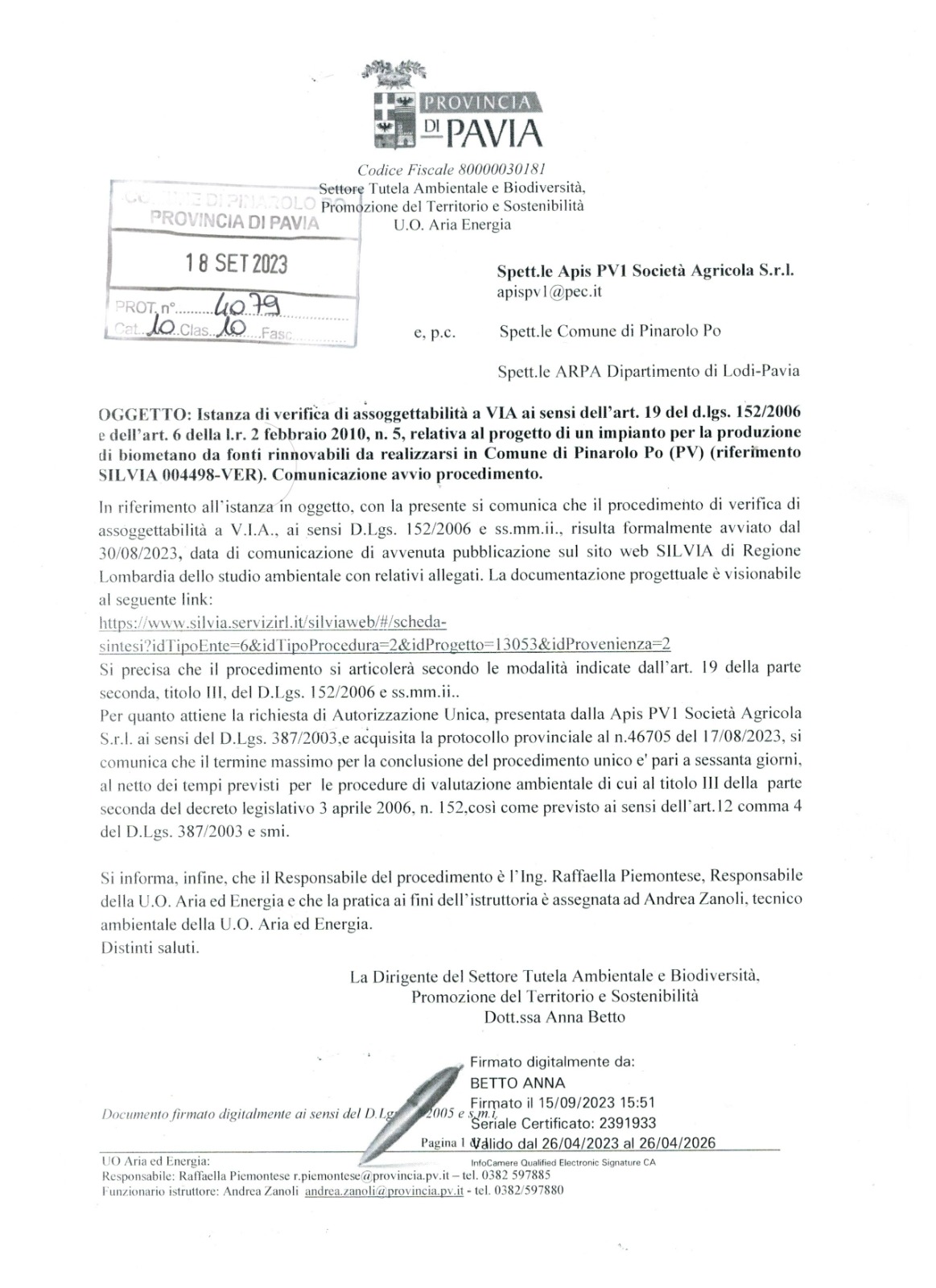 La nostra Amministrazione Comunale, con la Commissione Ambiente e Territorio e l’Ufficio Tecnico Comunale, sta già verificando la questione, ha già analizzato tutti gli aspetti viabilistici, ambientali, urbanistici e tutta la documentazione tecnica relativa e sta predisponendo le osservazioni da presentare in merito.