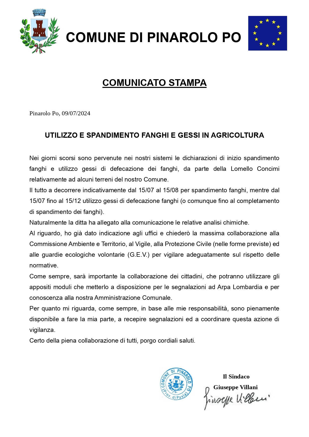 Comunicato stampa per spandimento fanghi e gessi in agricoltura