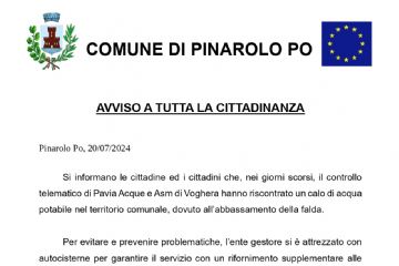 Si informano le cittadine ed i cittadini che, nei giorni scorsi, il controllo telematico di Pavia Acque e Asm di Voghera hanno riscontrato un calo di acqua potabile nel territorio comunale, dovuto...