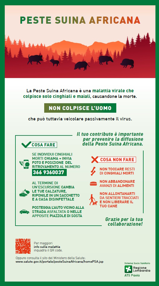 La Peste Suina Africana (PSA) é una malattia virale che colpisce solo cinghiali e maiali, causandone la morte.