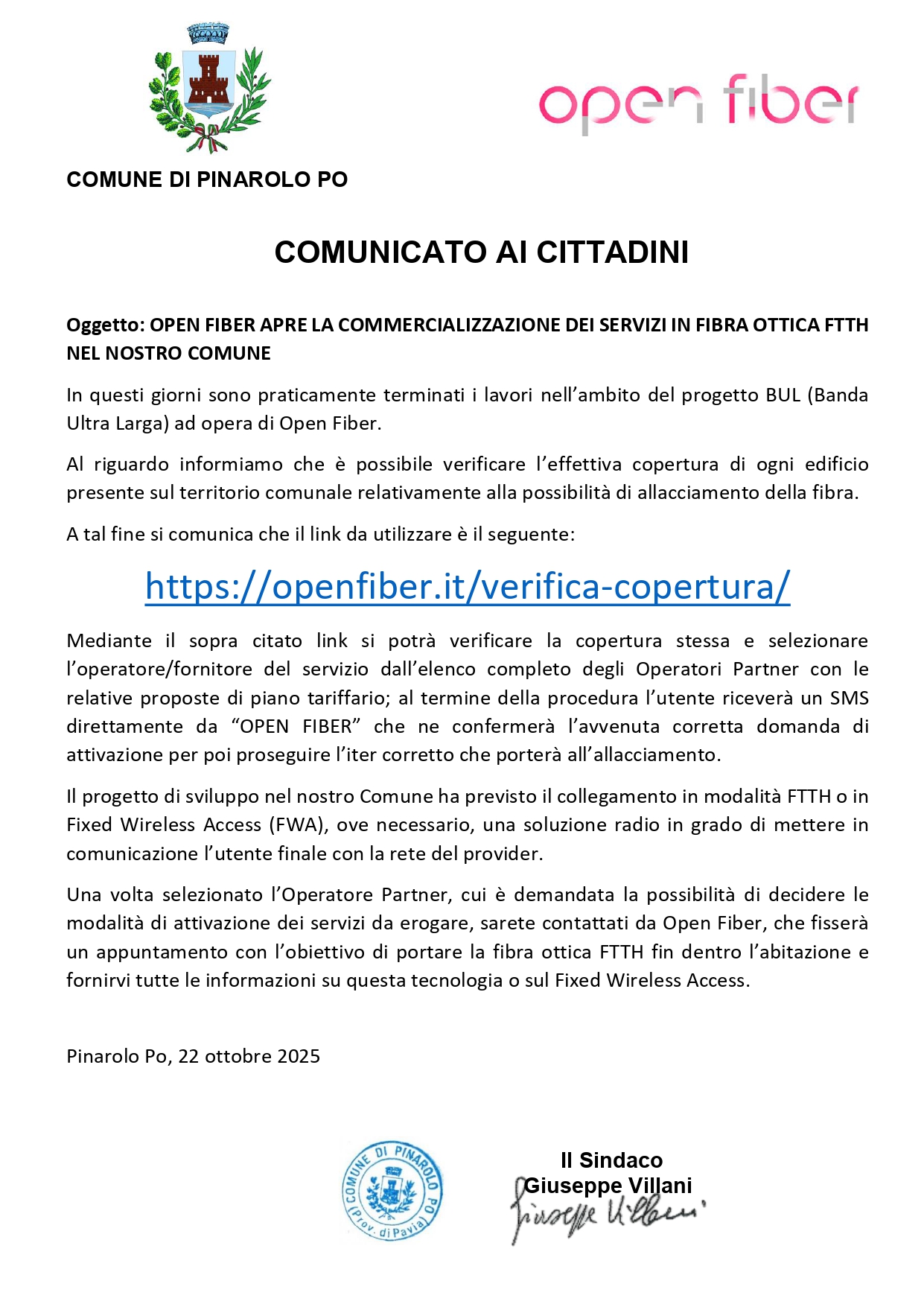 A tal fine si comunica che il link da utilizzare è il seguente: https://openfiber.it/verifica-copertura/