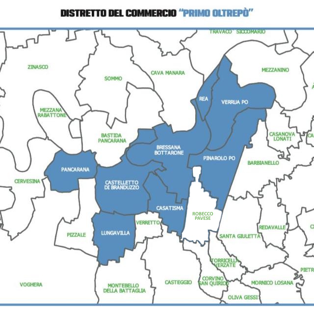 Vi informiamo che è stato costituito il Distretto diffuso di rilevanza intercomunale (DiD) del Primo Oltrepò: Distretto del commercio costituito sul territorio dei Comuni di Bressana Bottarone (Capofila), Casatisma, Castelletto di Branduzzo, Lungavilla, Pancarana, Pinarolo Po, Rea e Verrua Po, riconosciuto da Regione Lombardia.