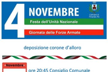 L'Amministrazione Comunale invita la cittadinanza a partecipare alle celebrazioni del 4 Novembre, Festa dell'Unità d'Italia e Giornata delle Forze Armate, in ricordo dei Caduti di tutte le guerre...