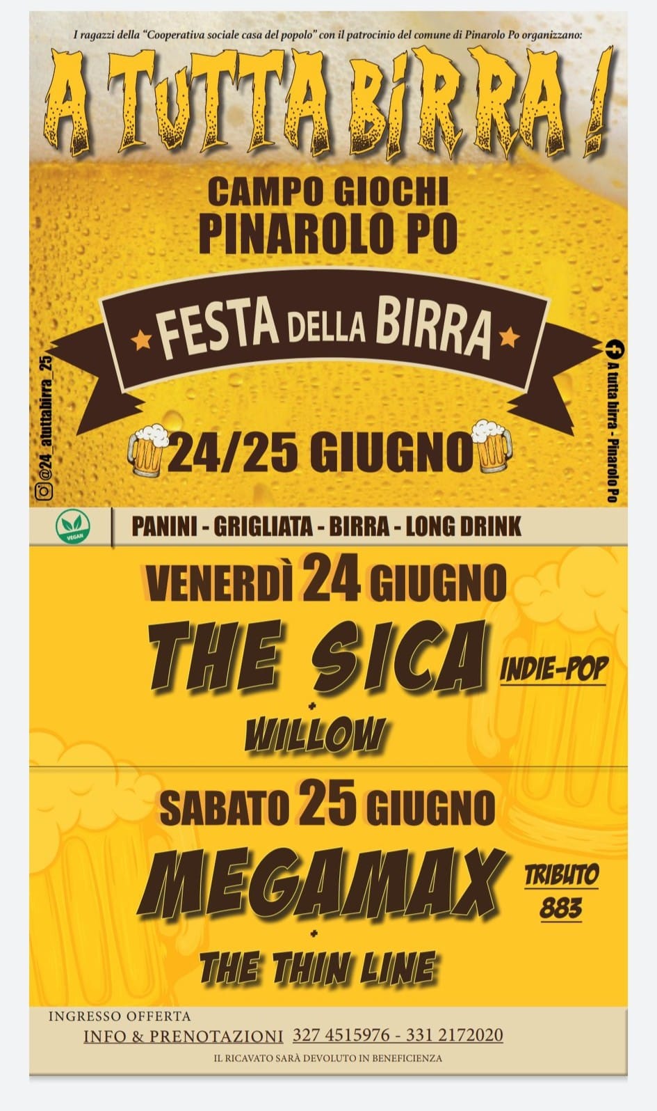 I ragazzi della Cooperatica "Casa del Popolo" con il Patrocinio dell’Amministrazione Comunale, in collaborazione con la Pro-Loco di Pinarolo Po, organizza la Terza Edizione di "A Tutta Birra!"