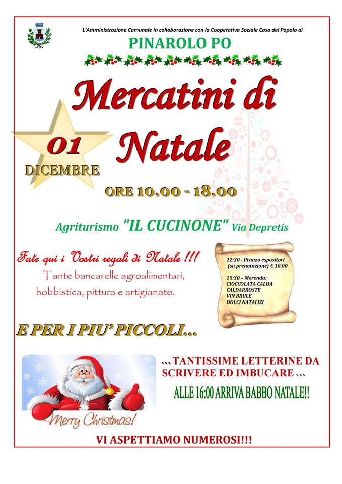 L'AMMINISTRAZIONE COMUNALE E LA COOP. CASA DEL POPOLO ORGANIZZANO PER DOMENICA 1 DICEMBRE 2019 I MERCATINI DI NATALE PRESSO L'AGRITURISMO "IL CUCINONE".