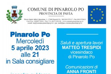 L'Amministrazione Comunale di Pinarolo Po organizza mercoledì 5 aprile alle ora 21,00 presso la Sala Consigliare l'incontro sul tema