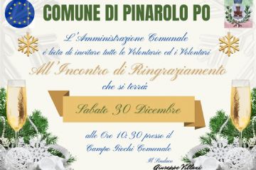 L'Amministrazione Comunale organizza per Sabato 30 Dicembre presso il Campo Giochi Comunale alle ore 10,30 L'Incontro di Ringraziamento alle Volontarie e ai Volontari che operano nel nostro...