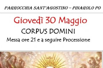 Giovedì 30 Maggio alle ore 21.00 viene celebrata la Santa Messa del Corpus Domini seguita dalla processione per le vie del paese
