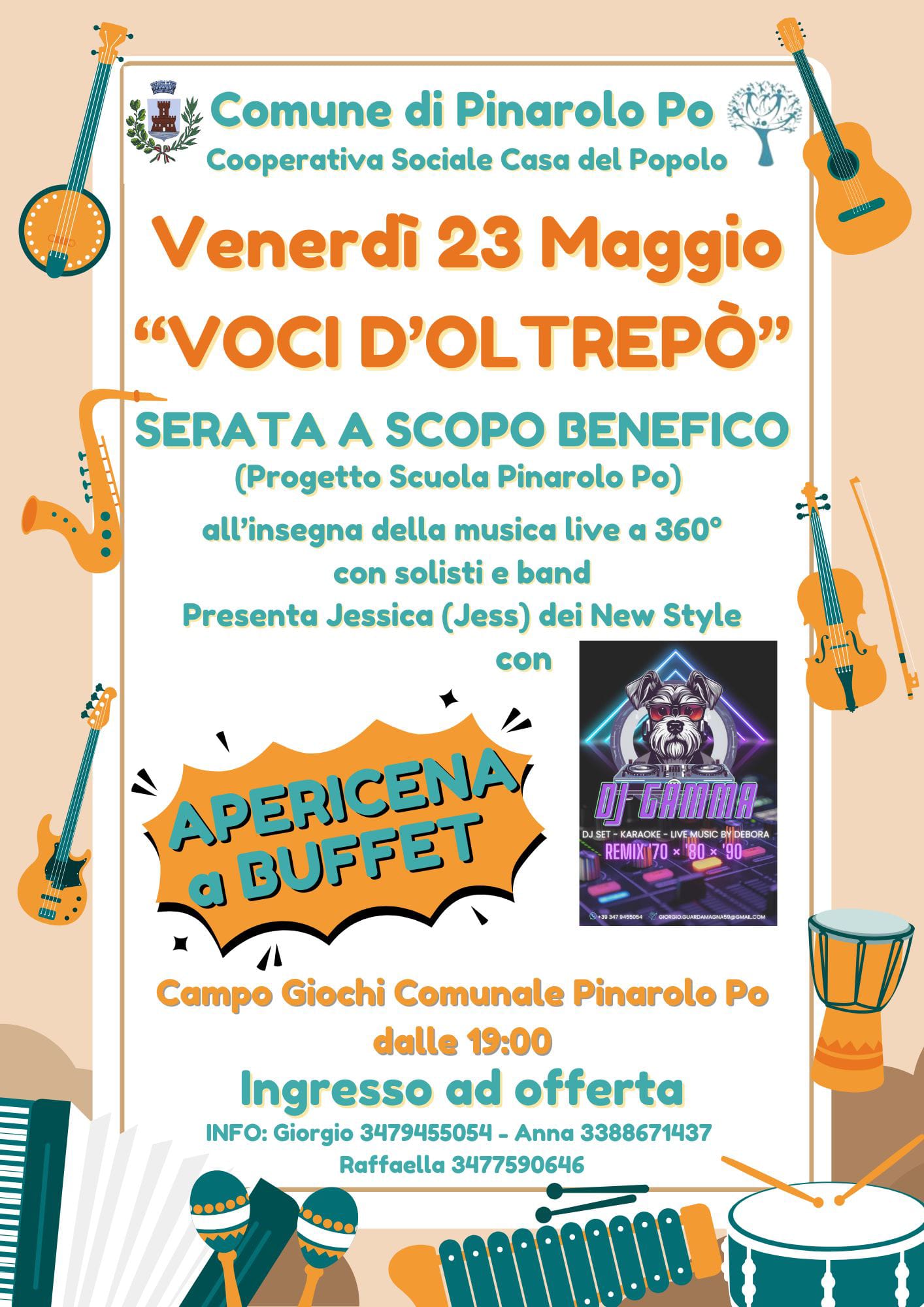 presso il Campo Giochi Comunale "VOCI D'OLTREPO", serata a scopo benefico all'insegna della musica live a 360° con solisti e band.